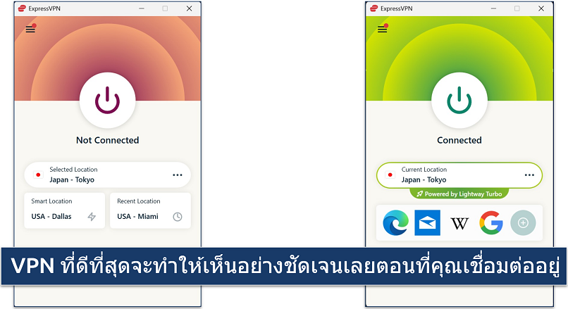 ตอนนี้คุณสามารถเชื่อมต่อกับเซิร์ฟเวอร์เพื่อเปลี่ยนหมายเลข IP ของคุณและปิดบังหมายเลขที่แท้จริงของคุณได้แล้ว VPN ที่ดีจะมาพร้อมกับการตั้งค่าที่เหมาะสมสำหรับโปรโตคอลชั้นนำหรือเสนอบางสิ่งอย่าง Kill Switch ที่คุณสามารถเลื่อนเปิดและปิดได้ ฟีเจอร์นี้จะยกเลิกการเชื่อมต่อคุณจากอินเทอร์เน็ตหาก VPN เกิดขาดการเชื่อมต่อโดยไม่ได้ตั้งใจ หลังจากที่ตั้งค่าดังกล่าวแล้ว คุณก็สามารถเชื่อมต่อได้ ตัวอย่างเช่น ด้วยหมายเลข IP ของญี่ปุ่นผ่าน VPN คุณสามารถเข้าถึงแอปธนาคาร Rakuten ได้อย่างปลอดภัยจากทุกที่