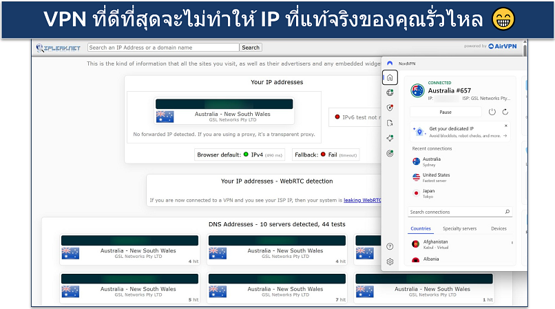 เราขอแนะนำให้ใช้เครื่องมือทดสอบการรั่วไหลเพื่อยืนยันว่าการเปลี่ยนแปลงหมายเลข IP ของคุณสำเร็จ สิ่งที่คุณต้องทำคือเยี่ยมชมหนึ่งในเว็บไซต์ตรวจสอบหมายเลข IP ที่มีให้บริการอยู่มากมาย เครื่องมือเหล่านี้จะตรวจจับว่าหมายเลข IP ที่อุปกรณ์ของคุณกำลังแสดงอยู่นั้นปัจจุบันเป็นหมายเลขอะไรโดยอัตโนมัติ หาก VPN ใช้งานได้จริง ตำแหน่งที่แท้จริงของคุณจะถูกปิดบังเอาไว้และเว็บไซต์ที่คุณเยี่ยมชมก็จะมอบเห็นเฉพาะ IP เซิร์ฟเวอร์ของ VPN เท่านั้น หากหมายเลข IP เกิดรั่วไหล บริการสตรีมมิ่งอย่าง BBC iPlayer และ ITVX จะรู้ว่าคุณกำลังใช้หมายเลข IP ที่ไม่ใช่ของสหราชอาณาจักรและปิดกั้นการเข้าถึงแม้ว่าคุณจะกำลังใช้ VPN เพื่อวัตถุประสงค์ด้านความปลอดภัยก็ตาม